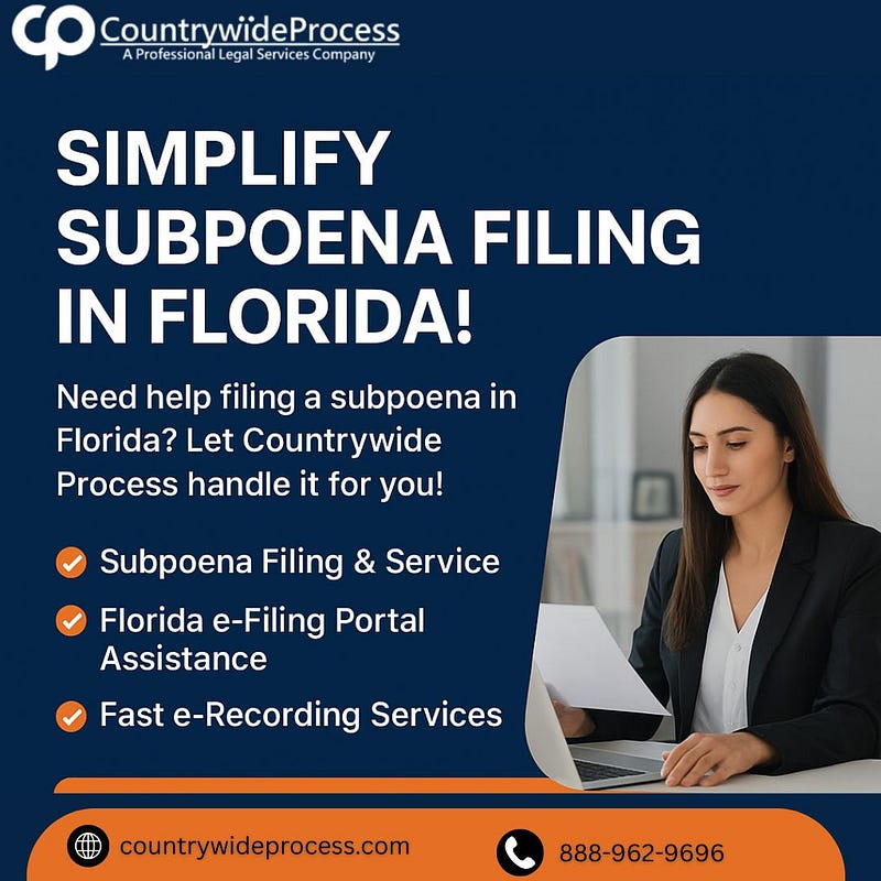 In this article, we’ll break down everything you need to know about filing a subpoena in Florida — from the basics to best practices — and show you how professional services like Countrywide Process can simplify the entire process for you.